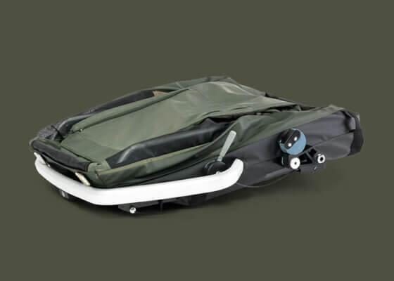 Dank Druckknopf kannst Du Deinen Hundeanhänger jetzt noch schneller und einfacher zusammenfalten – auf ein kompaktes Maß von 85 × 72 × 26 cm.