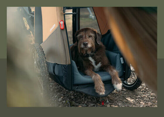 Dog Enna bietet genügend Platz für große Hunde bis 35 kg. Der Fahrradanhänger ist so konzipiert, dass Dein Hund sitzend oder liegend mitfahren kann!